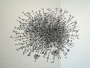 Scope is a series of drawings whose starting point are microscopic images of bread yeast, and are based on the extraordinary capacity of these fungi and their ability to invert scale. Bread yeast, Saccharomyces cerevisiae, or baker’s yeast, is a type of one-celled fungi, which is reproduced by a process called budding. Bread yeast causes bread to rise by releasing carbon dioxide, which gets trapped in the dough. This microscopic yeast has a macroscopic effect on bread dough.