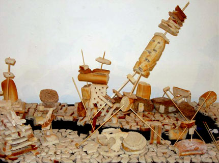 Text above by the children of Scoil Phadraig Naofa and accompanying sculpture, left, representing an ‘Apocalyptic future imagined in 3006.’